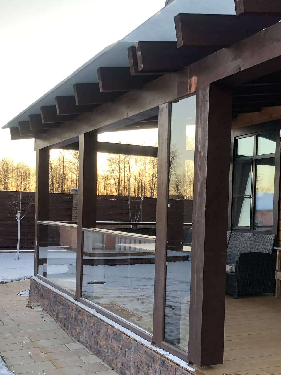 Все ограждения из стекла изготавливаются исключительно из закалённого стекла или триплекса, что является обязательным требованием для подобных конструкций. Закалённое стекло отличается высокой устойчивостью к ударным нагрузкам и перепадам температуры, а при разрушении рассыпается на мелкие безопасные фрагменты. Триплекс, в свою очередь, представляет собой многослойную конструкцию, где стеклянные слои соединены специальной плёнкой, удерживающей осколки при повреждении.