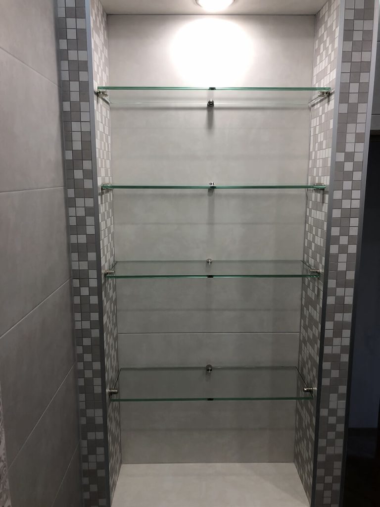 – стеклянные полки отличаются долговечностью и высокой прочностью. Закалённое стекло выдерживает значительные нагрузки, устойчиво к механическим повреждениям и температурным перепадам, что делает полки надёжными даже при интенсивном использовании. Благодаря этому стеклянные полки подходят как для жилых помещений, так и для общественных и коммерческих объектов с высокой проходимостью.