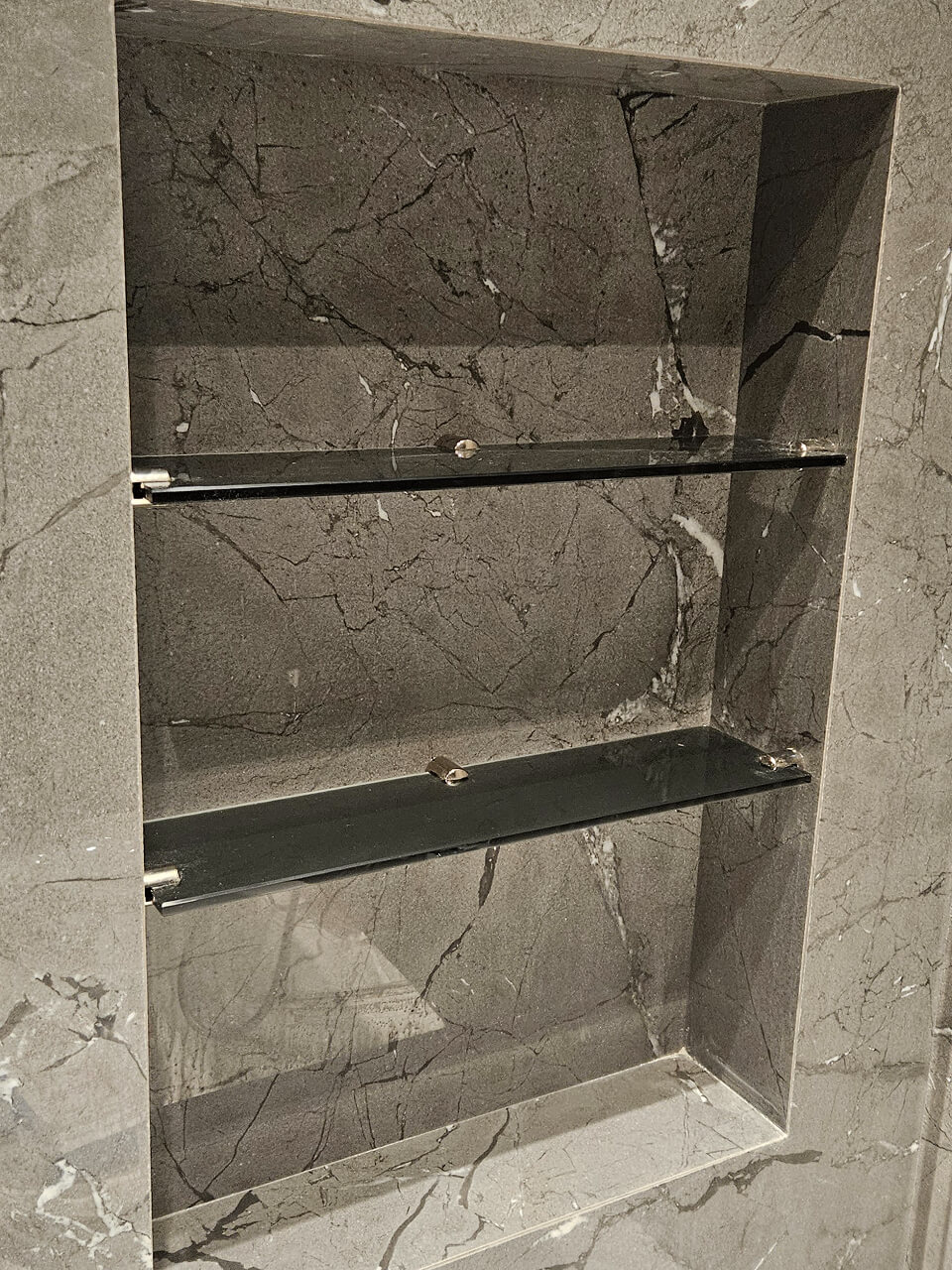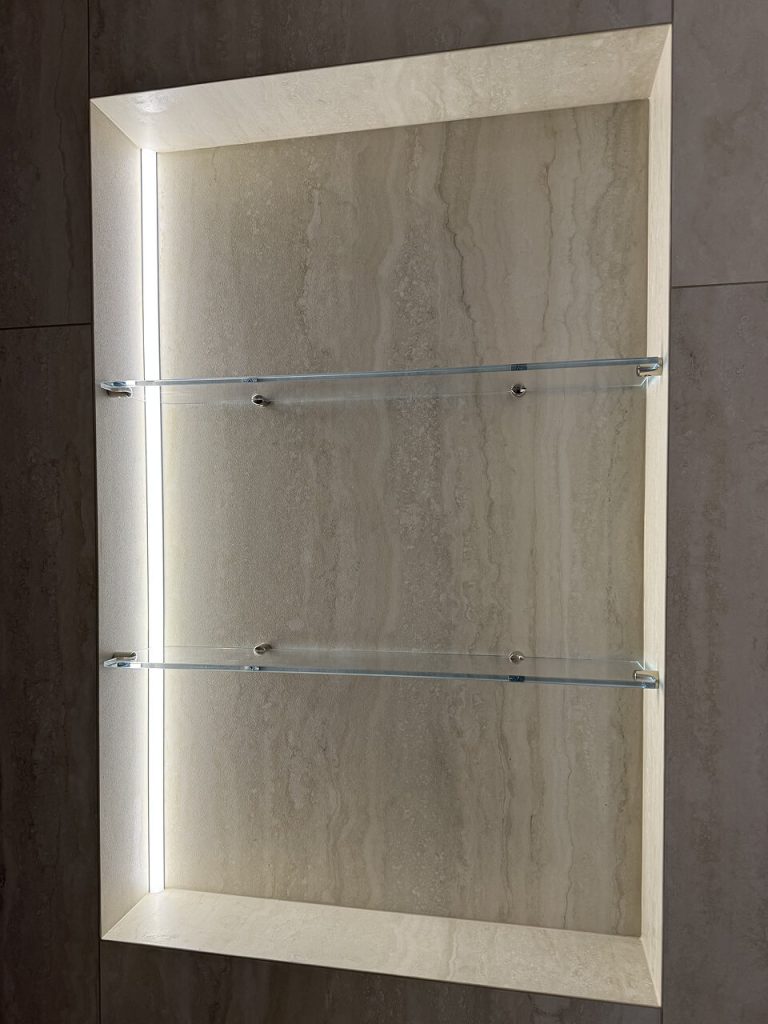 Кроме закалённого стекла, для некоторых полок используется триплекс, который дополнительно защищает от разрушения и повышает безопасность. Такой материал особенно актуален для больших полок или мест с высокой нагрузкой, где важно сочетание эстетики и надёжности.