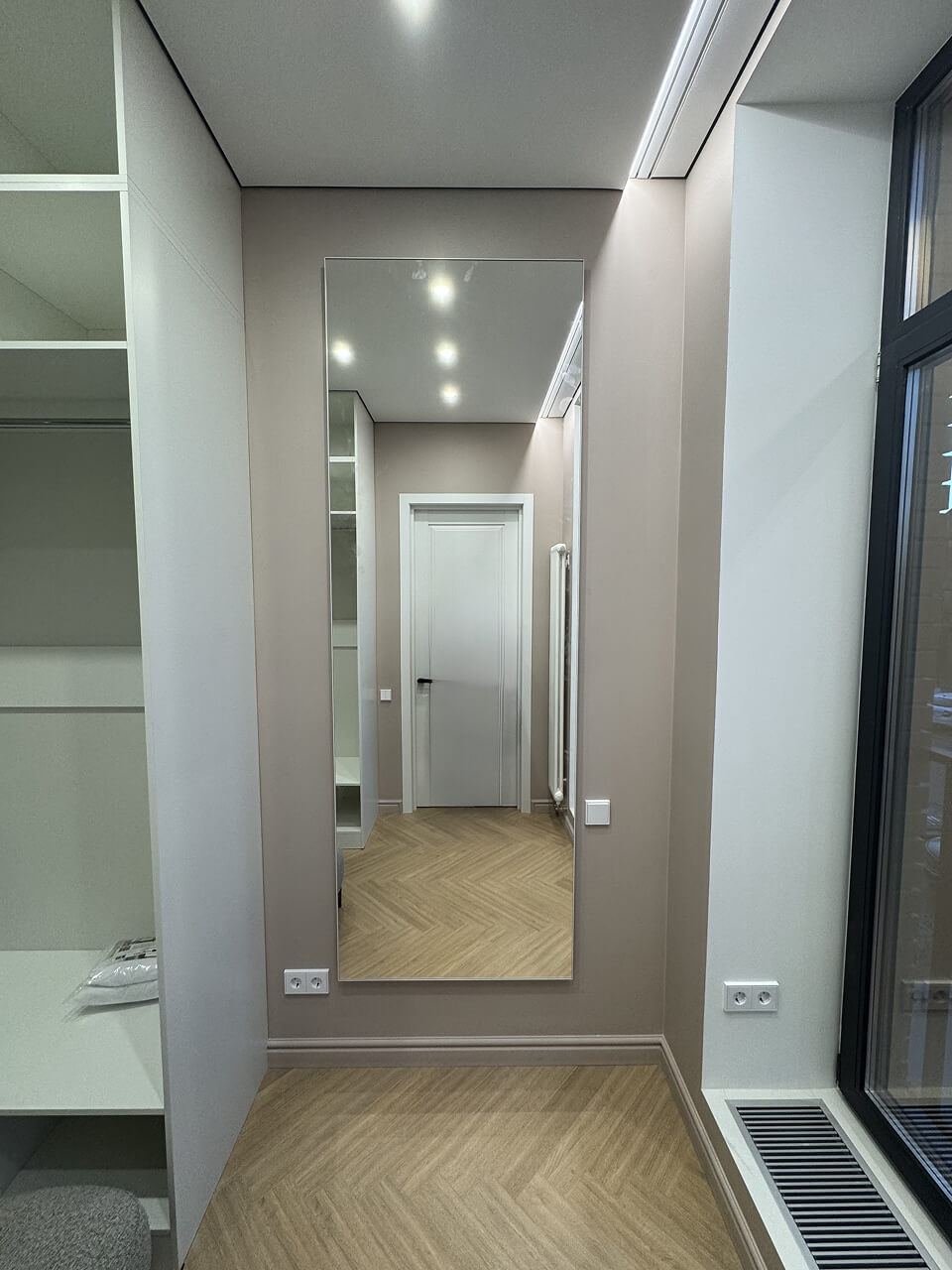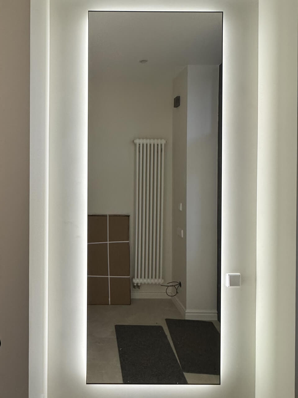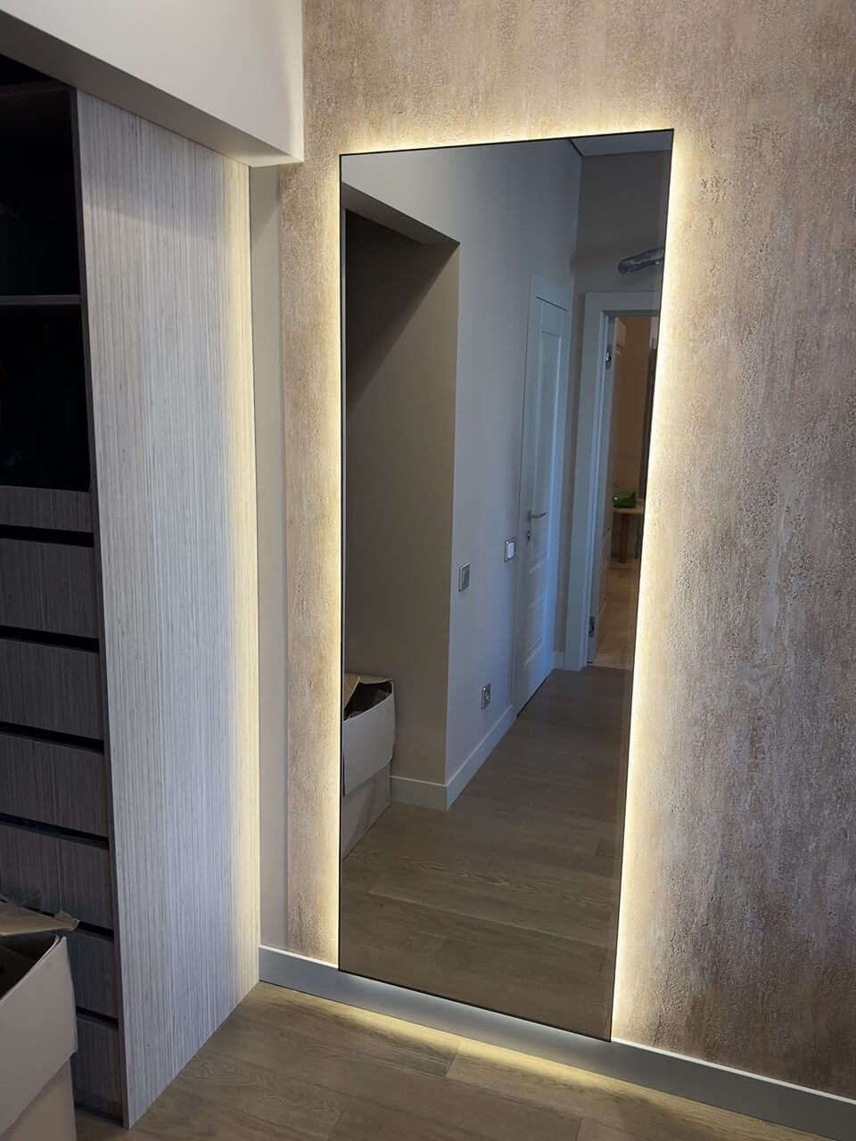 При заказе учитываются толщина зеркального полотна, ширина металлического профиля, тип обработки кромки и особенности крепления. Это позволяет создать изделие, которое будет не только эстетичным, но и максимально удобным в эксплуатации.