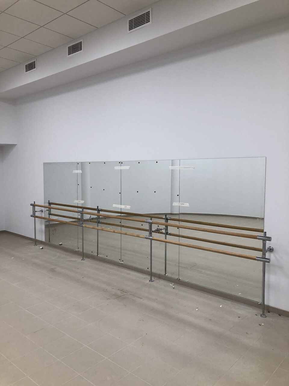 В танцевальных студиях и залах для групповых занятий особое значение имеет точность отражения и отсутствие визуальных искажений по всей высоте зеркальной поверхности. Для таких помещений используются большие зеркальные полотна с минимальным количеством стыков или с аккуратной стыковкой элементов. Это позволяет создавать комфортные условия для контроля движений и техники исполнения.
